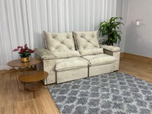ofá Pop Retrátil com Almofadas Soltas 3 Lugares Tecido Veludo 2.00cm Vicam