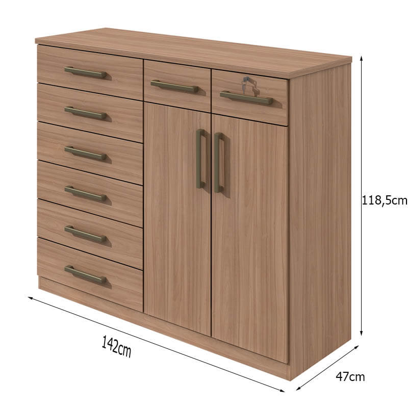 Cômoda Toronto com Sapateira 8 Gavetas Carvalho