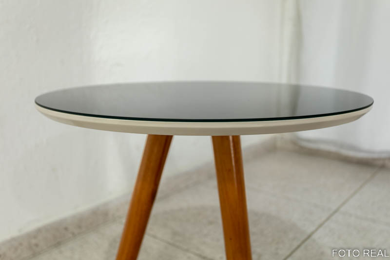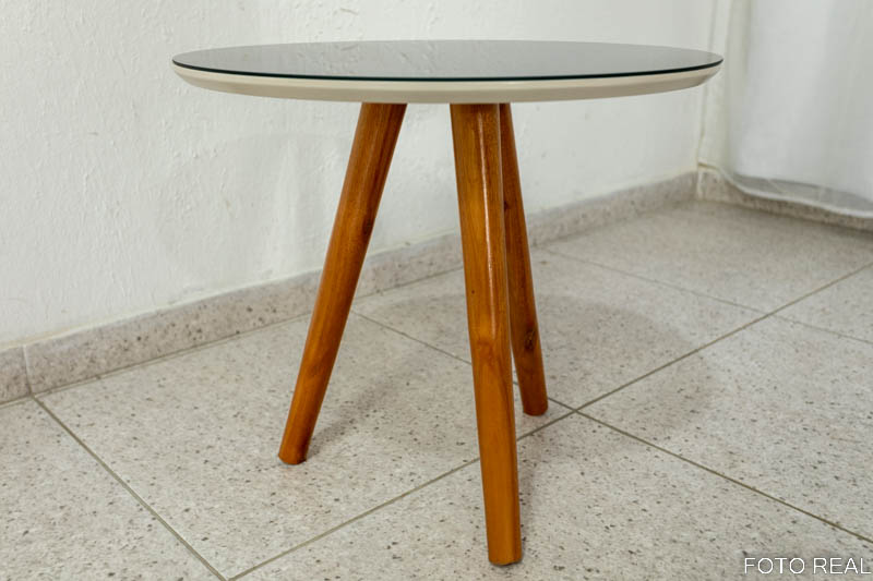 Mesa Decorativa 50cm Off White c/ Vidro Preto Tonhão