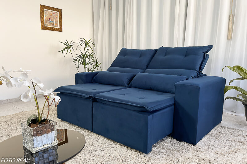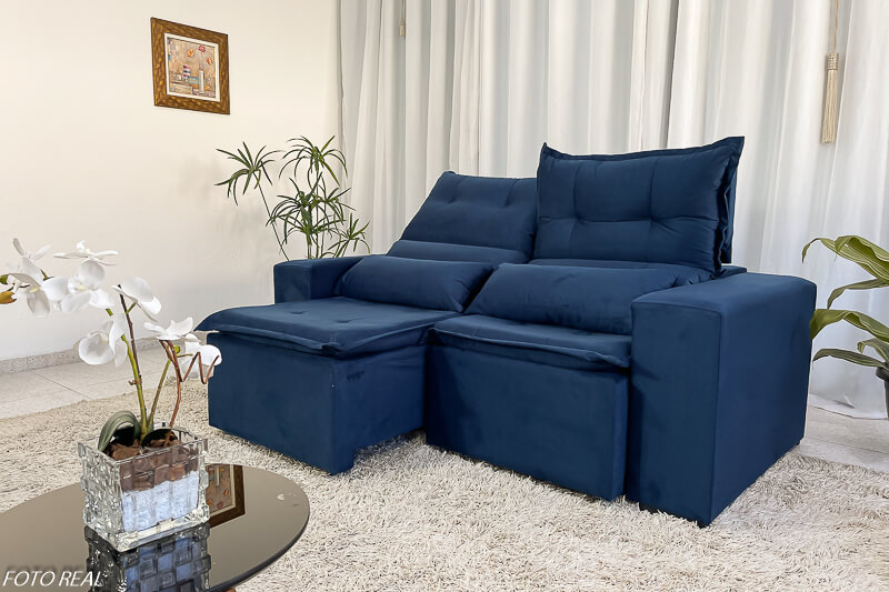 Sofá Retrátil e Reclinável Carol 1.90m Azul