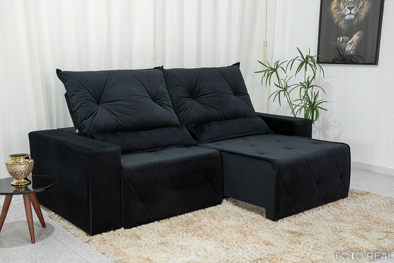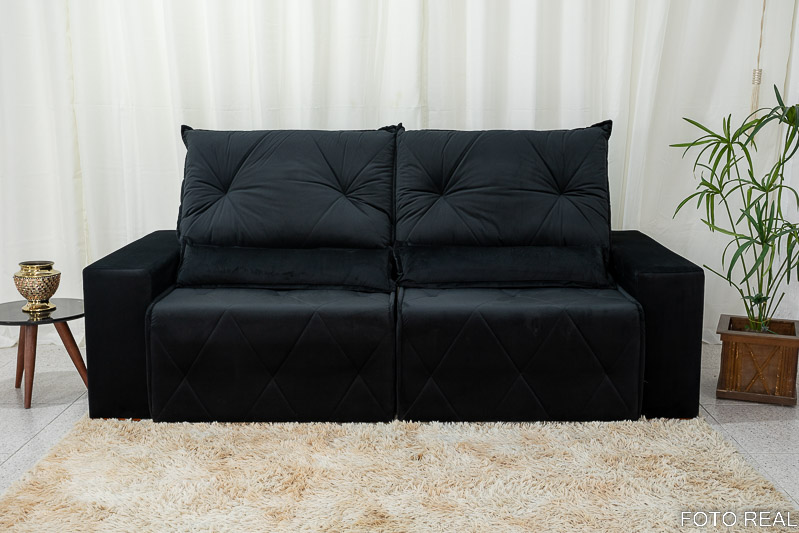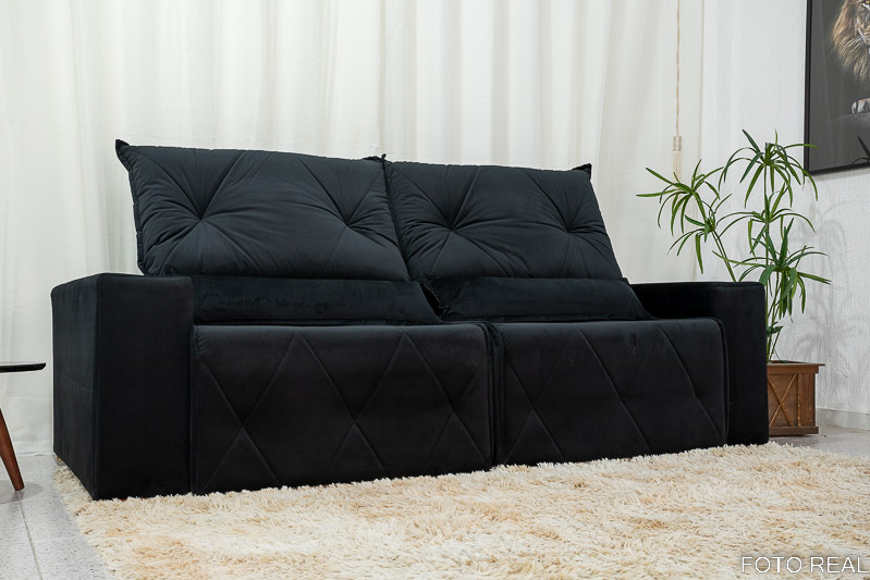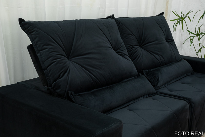 Sofá Retrátil Reclinável Belize 2.30m Veludo Preto A14