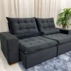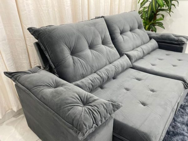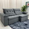 Sofá Retrátil Reclinável Las Vegas 2.30m Cinza Veludo