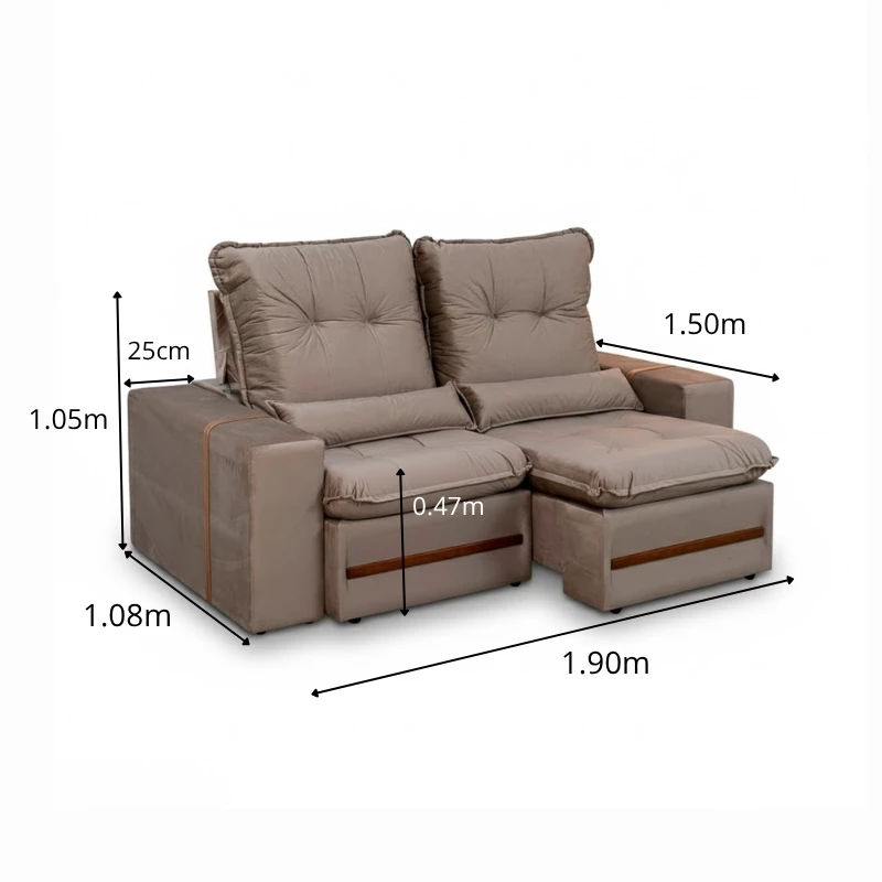 Sofá Retrátil Reclinável Montreal 1.90m Veludo Marrom - D33