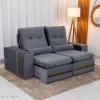 Informamos que é normal haver uma abertura entre os módulos dos sofás retráteis. Essa abertura é necessária para evitar atrito entre os módulos durante o movimento de abrir e fechar, prevenindo o desgaste do tecido.