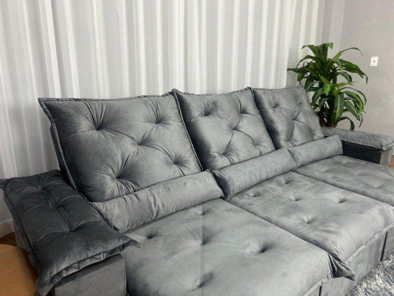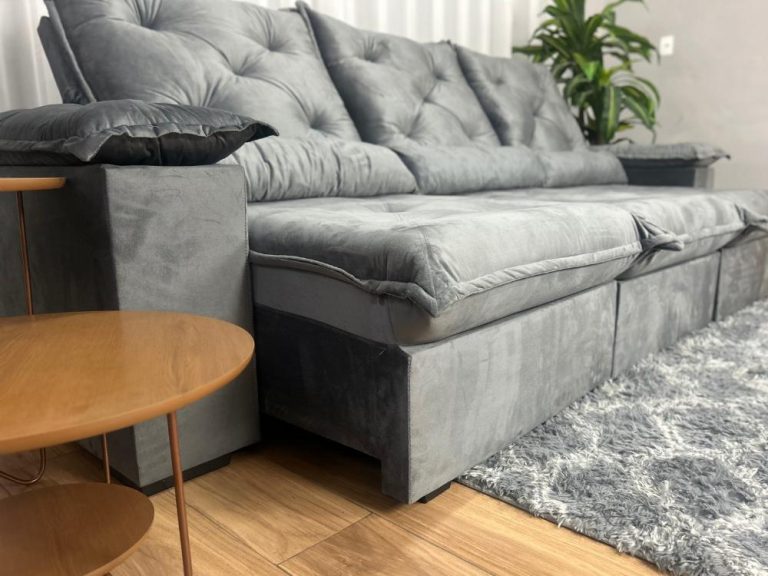 Sofá Retrátil Reclinável Porto Madero 2.70m- Cinza Veludo