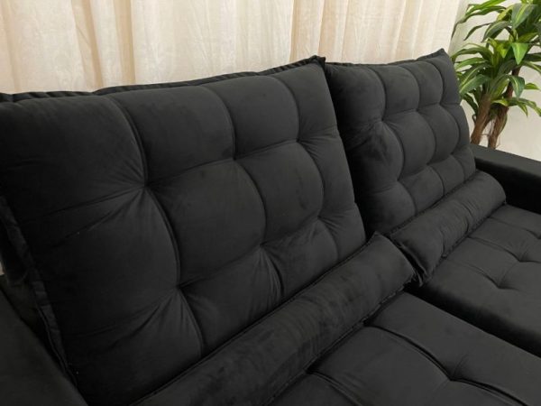 Sofá Retrátil Reclinável Small 2.30m Preto Veludo